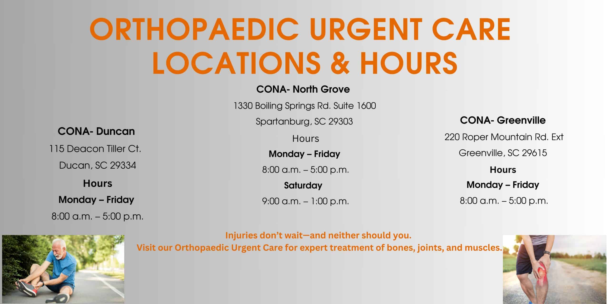 Visit our Orthopedic Urgent Care in Greenville and Spartanburg for sudden or urgent injuries and pain